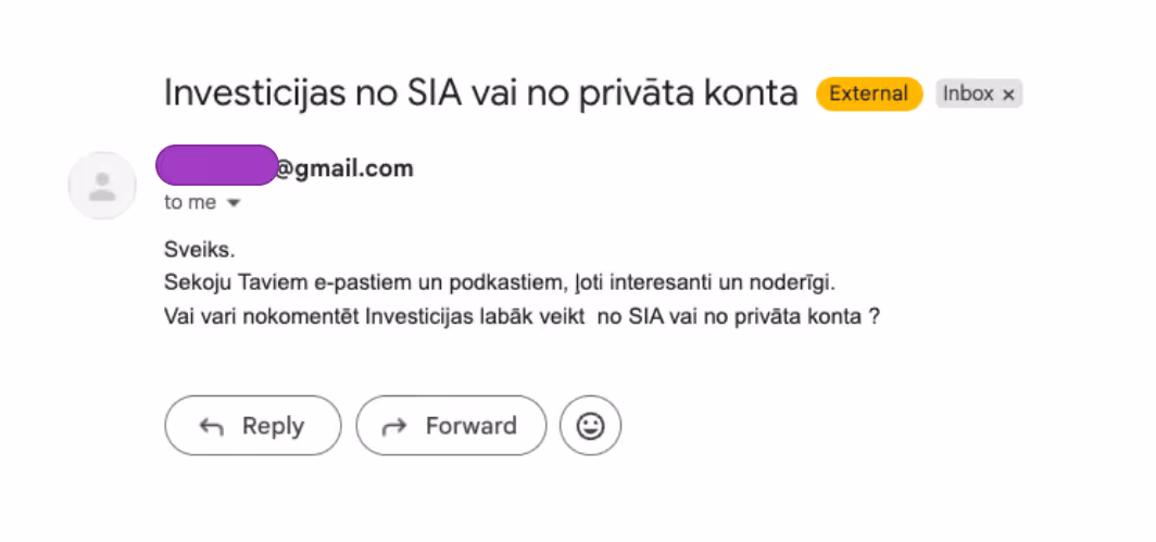 Nesen saņēmu šādu jautājumu no e-pastu lasītāja.