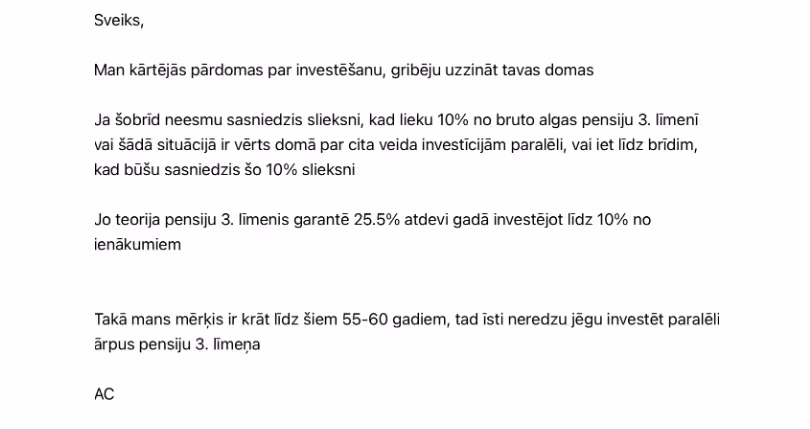 Tad tu atceries, ka Valters linkedinā raksta par investīciju tēmu, un aizdomājies…